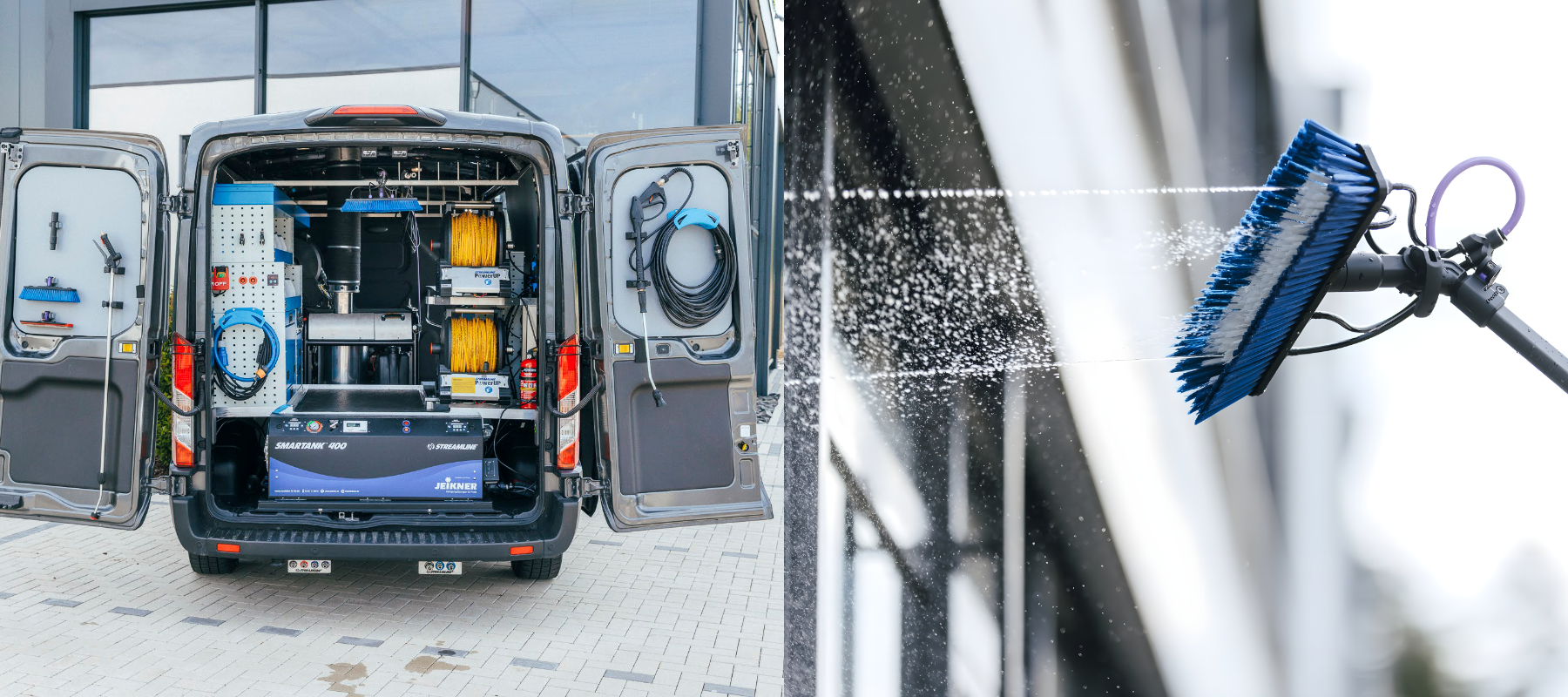 Mit unserem speziell ausgerüsteten Reinigungsfahrzeug bieten wir wirtschaftliche Lösungen für Industriehallen, Gewerbeimmobilien, Glasfassaden, Betonflächen und komplexe Gebäudestrukturen – effizient, sicher und ohne kostenintensive Gerüststellung.